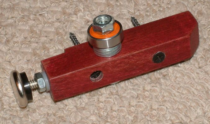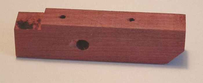 Also, drill the 5/16” hole for the stabilizer bearing through the side of the stop block.