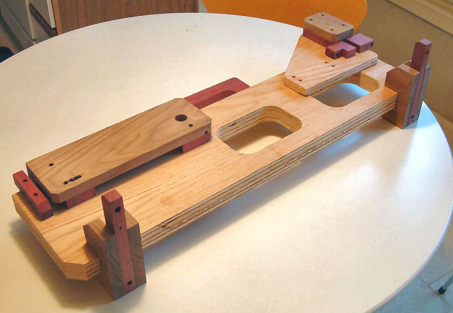 The wood parts have been drilled and sanded, and placed in an assembly mockup.