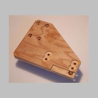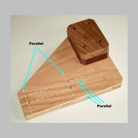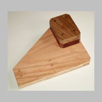 bolt, holding the toggle clamp lightly in place. Using any measurement equipment you feel will be constructive, align the toggle clamp so its action is perfectly perpendicular to the bottom edge of the toggle board. If you aligned the support blocks really well when you glued them on, they will be a very good guide. Just align the toggle clamp's edges parallel to those of the support block. When the toggle clamp is perfectly aligned, tighten down the nut to hold it in place. Check to make sure it is still perfectly aligned. |