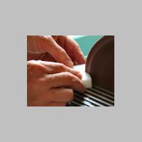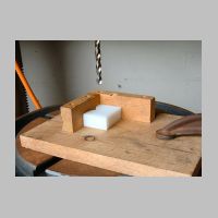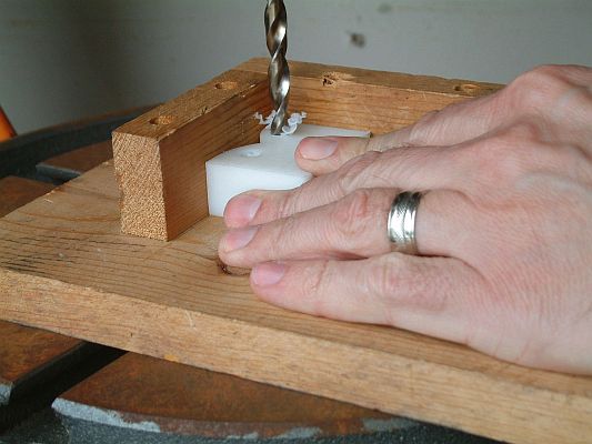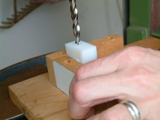 pieces, drilling, rotating the piece, drilling, and turning it up on